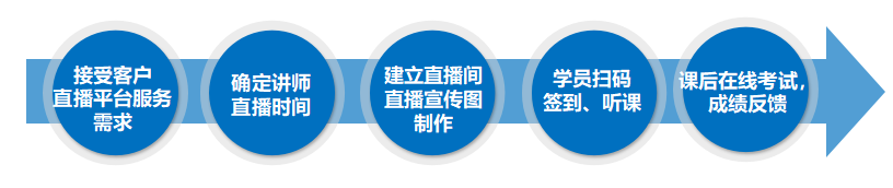 主持人互動:直播間中主持人會前開場,宣導課程內容,組織學員簽到。課程中關注學員需要,課后組織學員進行線上考試。